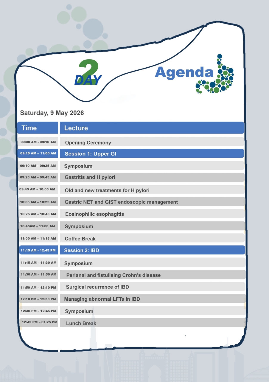 It is with great pleasure that we welcome you to the 2nd BSG International Gastroenterology Conference: From GI Inflammation to Cancer – Connecting the Dots, taking place in Dubai on 8–9 May 2026. With a distinguished faculty of global experts and thought leaders, this conference offers an exceptional platform to exchange knowledge, explore the latest advances, and engage in interactive discussions that bridge the fields of gastroenterology, hepatology, and oncology. Our aim is to create an environment where delegates can grow both professionally and personally through learning, collaboration, and innovation.